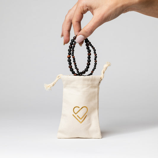 Red Tiger Eye, Lava Rock & Black Obsidian Bracelet